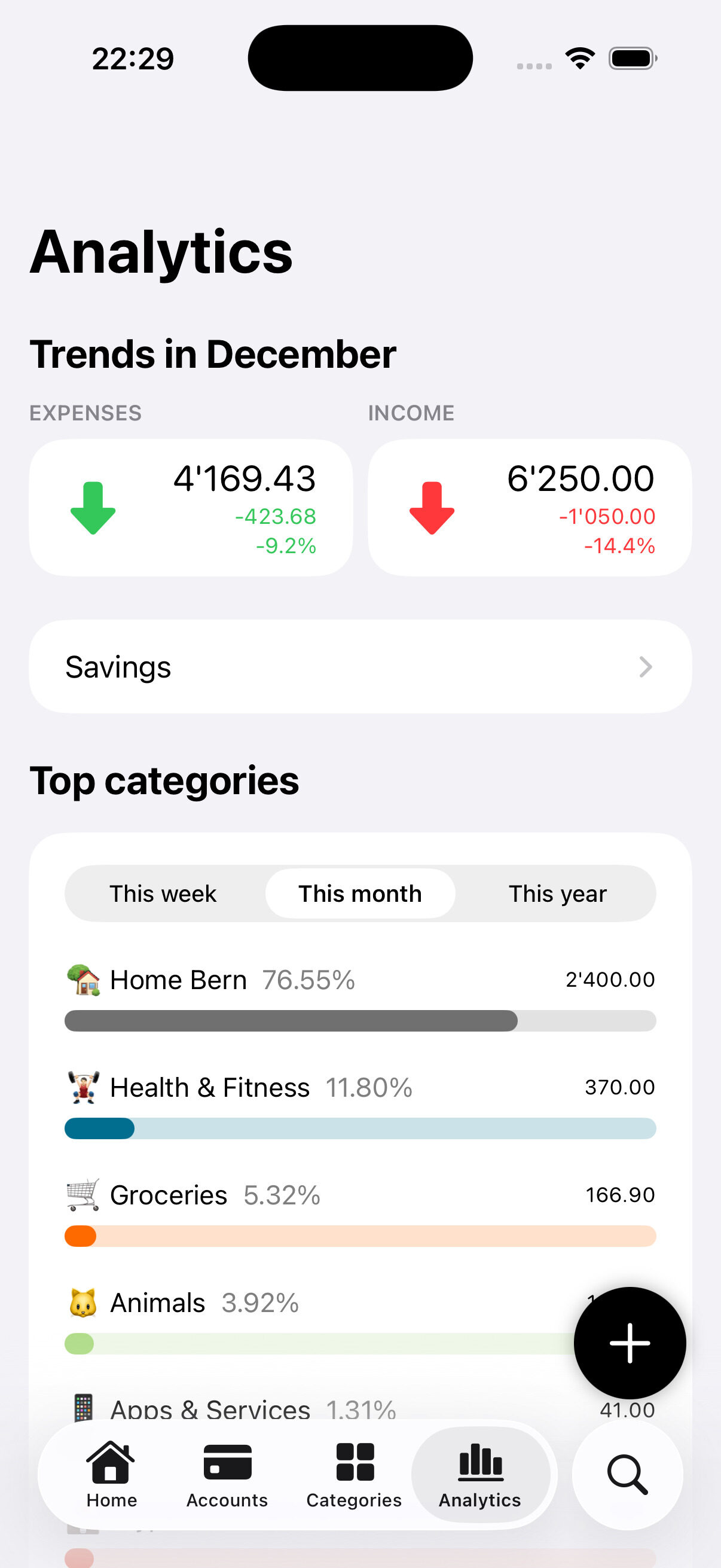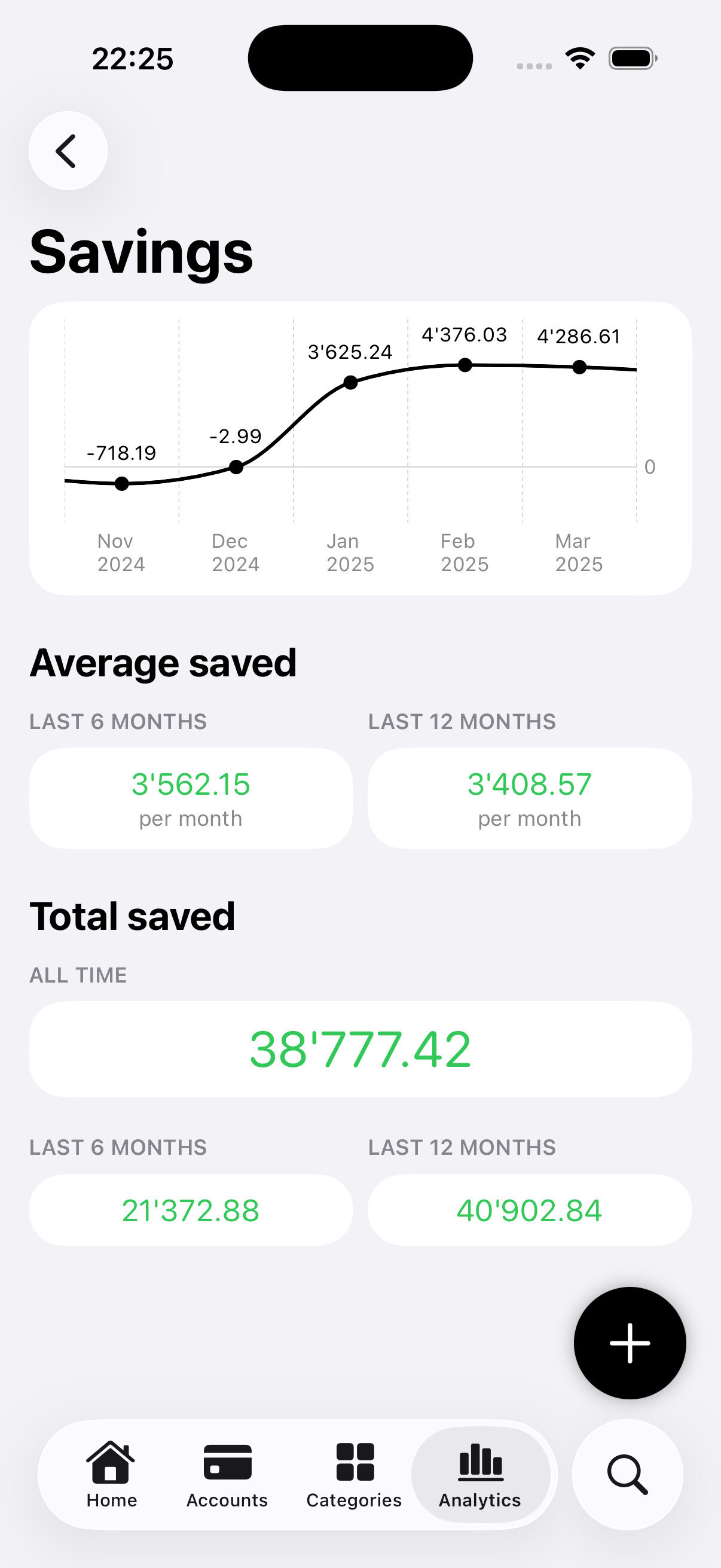Get simple and clear insights into where your money goes, across accounts and categories.