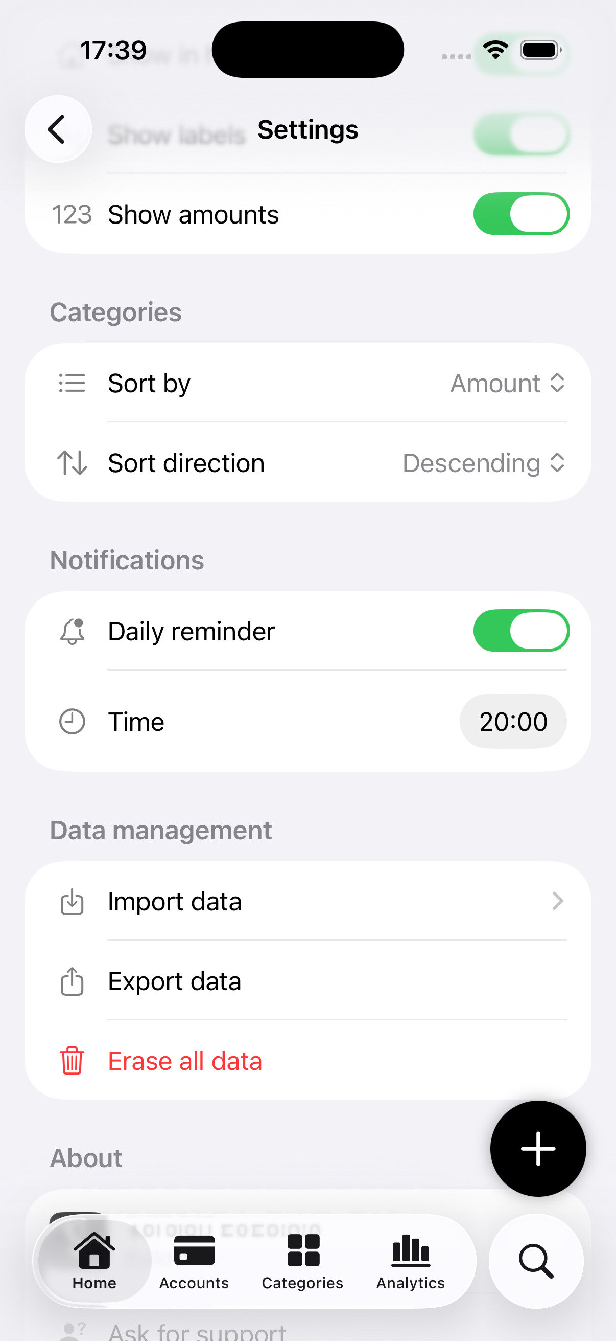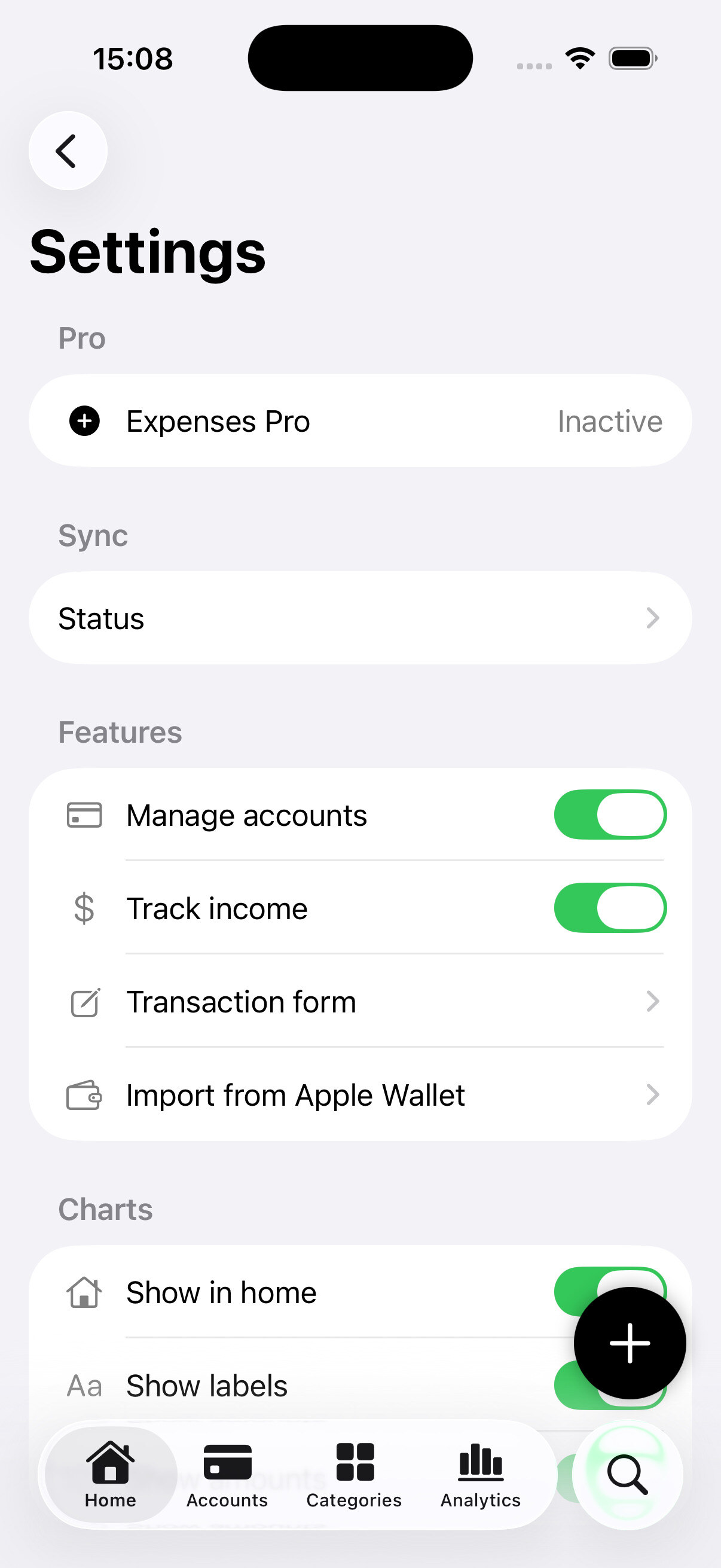 You don't need income tracking, accounts or you don't want to see charts? Tailor the app to fit your needs.