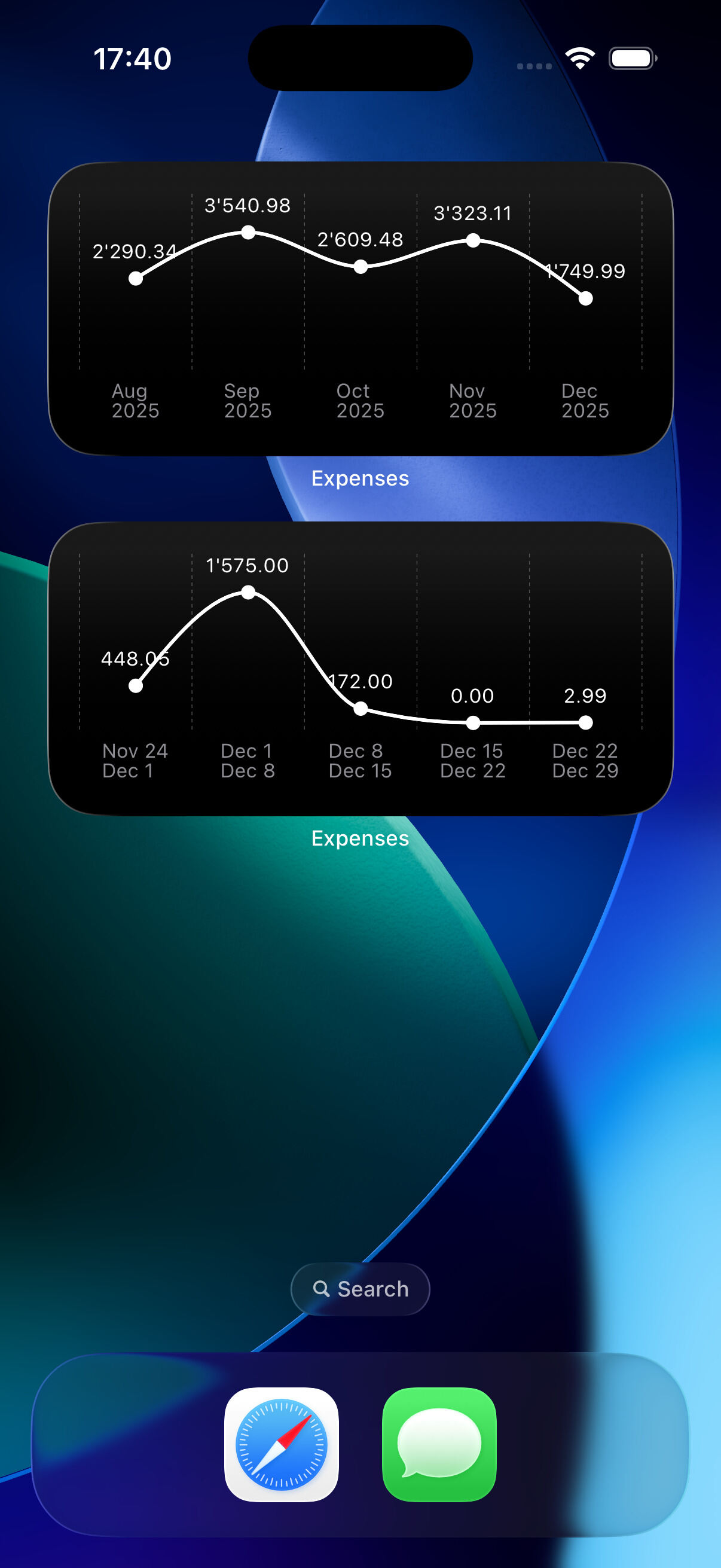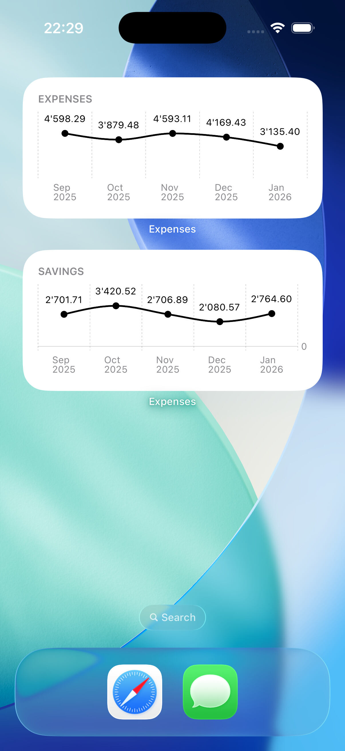 Add widgets to your home screen to check your spending or savings at a glance.