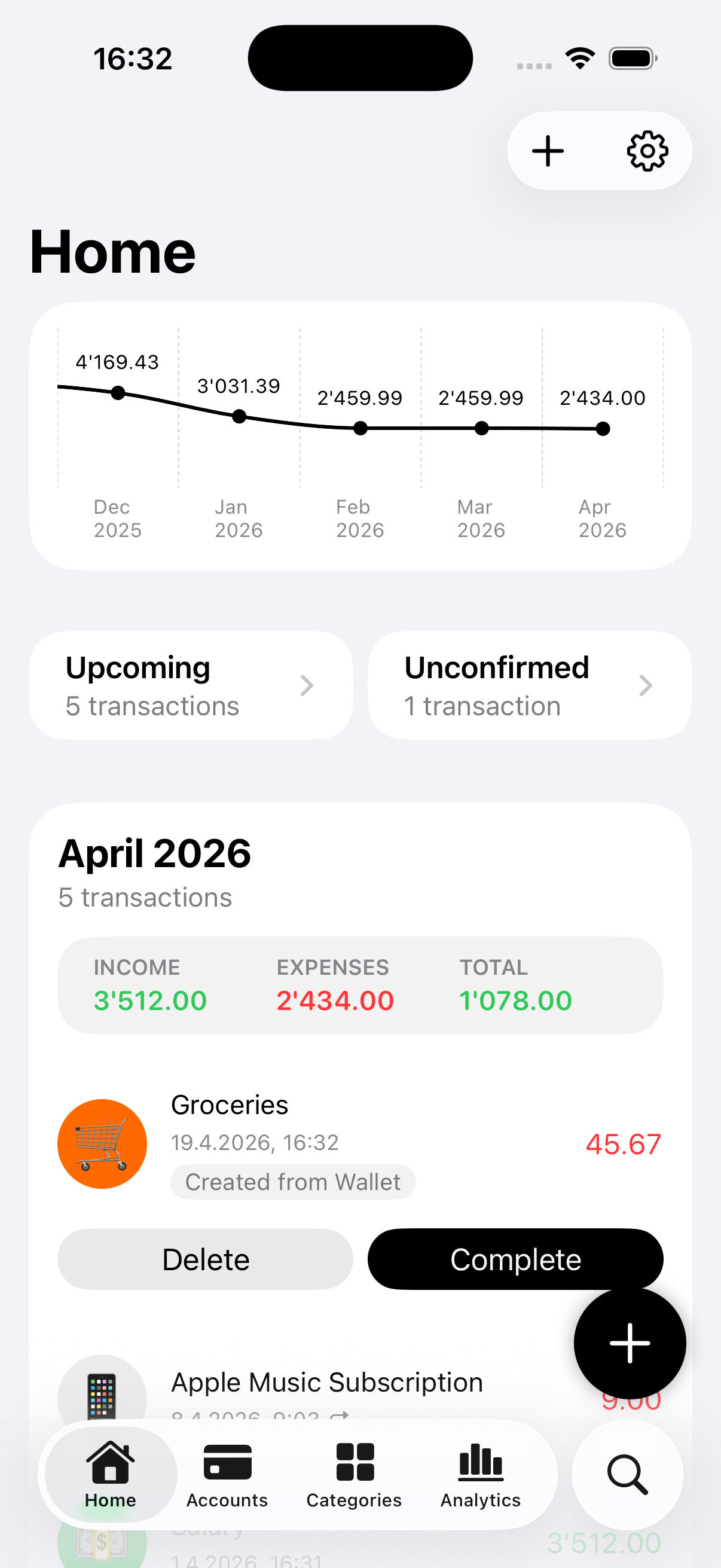 Whether it's a cup of coffee or your monthly salary, easily log and manage expenses and income in one place.